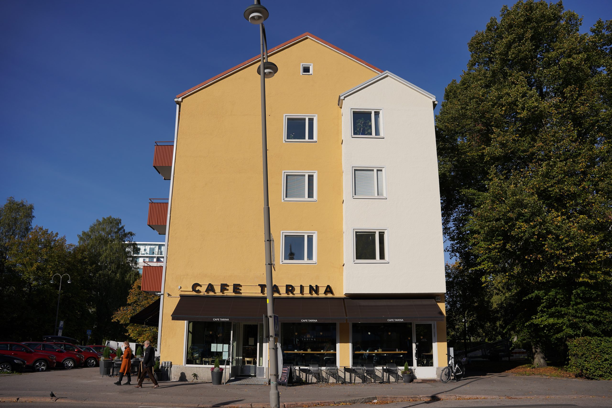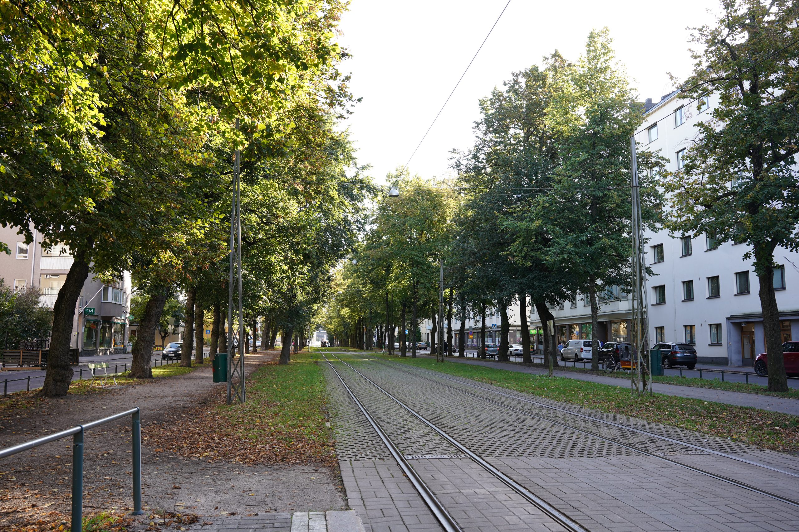 トラム「Laajalahden aukio」駅の並木道。中央駅から少し離れるので、落ち着いた雰囲気の場所でした🎵