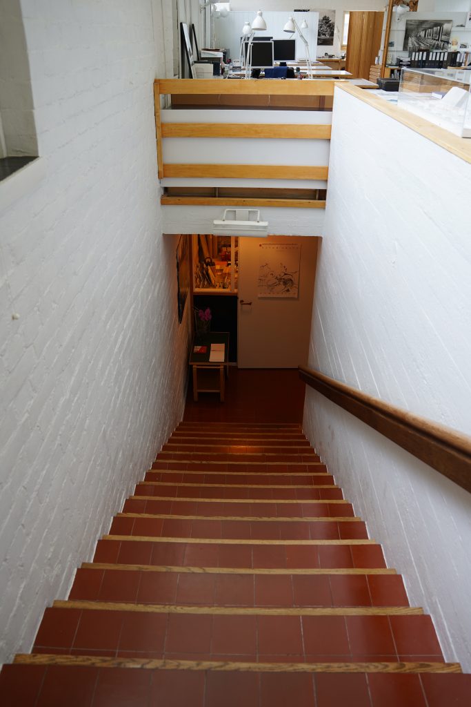 製図をする場所や、中庭を望む空間は、入り口から階段を登った2階にある場所でした。