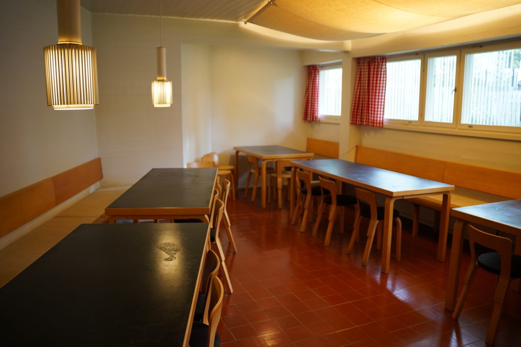 こちらが食堂。もちろん、テーブルや椅子もアアルトデザインの家具!